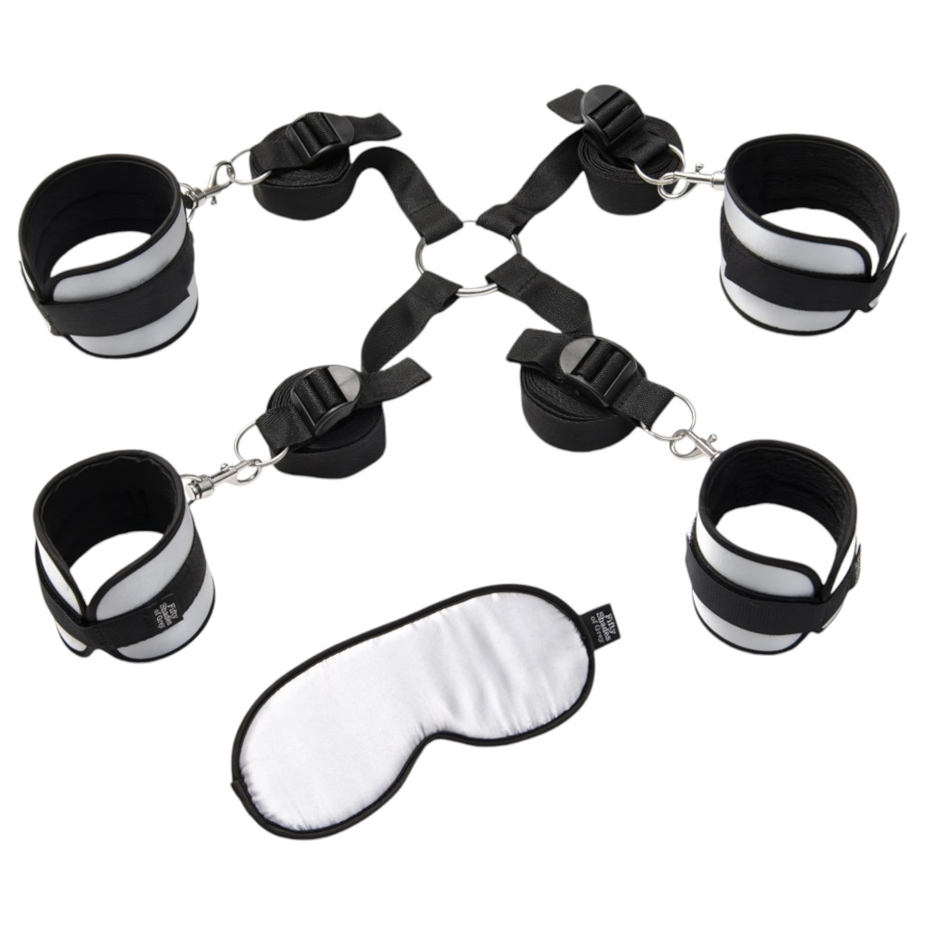 Impozáns kötözős szett A szürke ötven árnyalata kollekciójából!Exkluzív kivitelezésű, kényelmes párnázott, fekete plüss bevonattal készült csukló- és bokamandzsetták, D-fém rögzítőgyűrűkkel, karabinerekkel és rendkívül nagy szakítószilárdságú kötelek(5ágú kivitel, állítható hossz). Kösd kedvesed az ágyhoz, tekerd körbe és ráadásként a szemtakaróval fedd le a szemét. A hatás és az élmény biztosan nem várat magára.A szett tartalma:-1pár bokabilincs-1pár csuklóbilincs-karabinerek-kötelek-szatén, szörmés szemmaszk, rugalmas fejpánttal-Praktikus, szatén tárolótáskaHasználati útmutató letöltése (PDF)