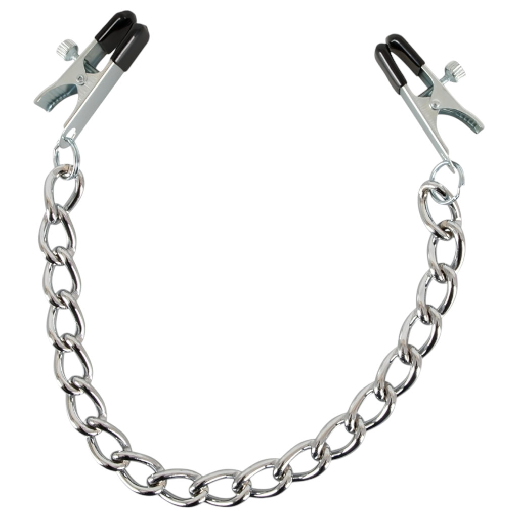 A csomag tartalma:2 db mellbimbó csipesz (védőborítással)1 db erős láncTerméktulajdonságok:Szín: ezüstAnyag: krómozott és cinkbevonatú fém, PVC (védőborítás)Hossz: 43,5 cm (lánc)Csipesz hossz: 2,3 cmSúly: 100 gBeállítható nyomás – külön csavaros beállítás minden bilincsenHasználati útmutató letöltése (PDF)
