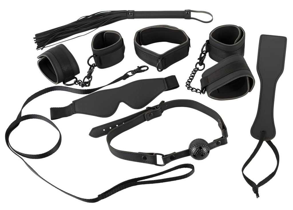 Bad Kitty - műbőr, tépőzáras kötöző szett (8 részes) - fekete