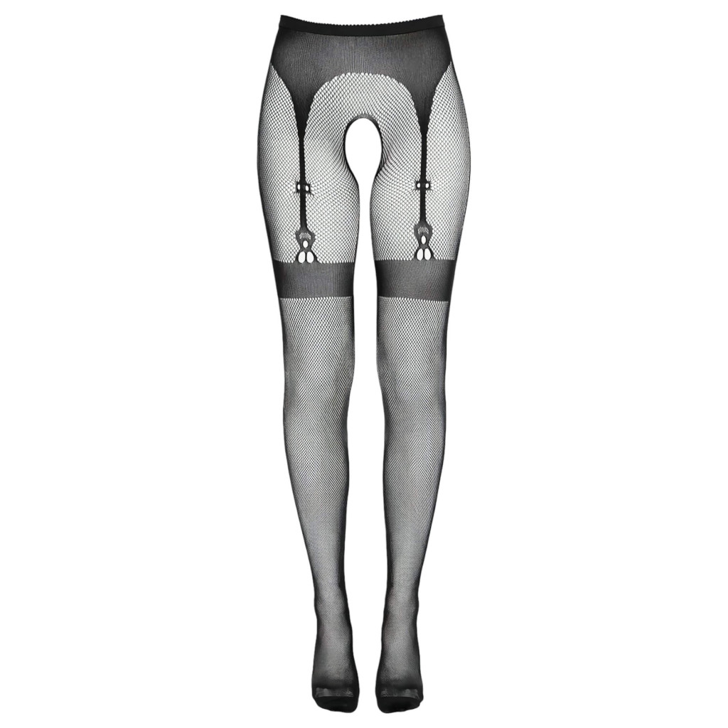 Cottelli Legwear - combfixes nyitott harisnya - fekete (S-L)