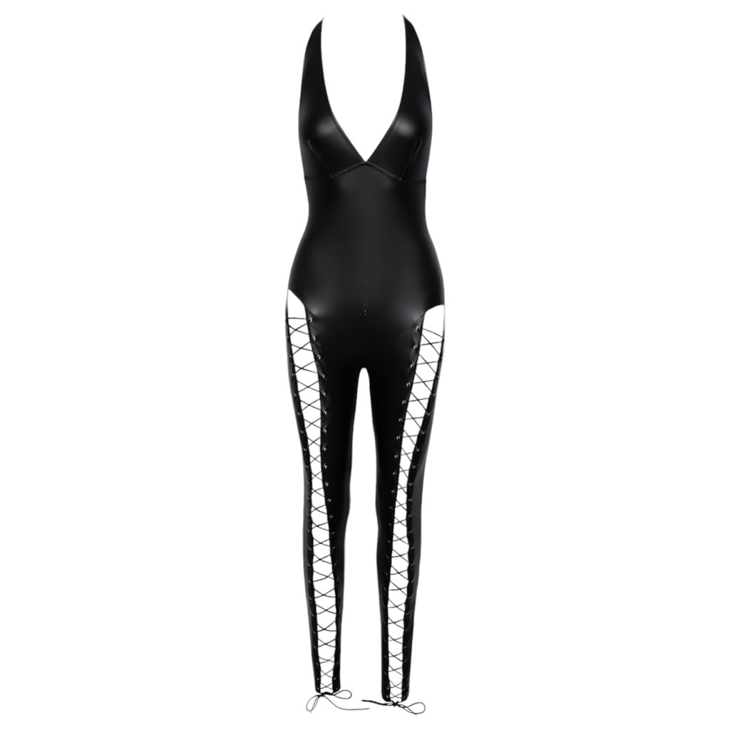 Cottelli Party - nyakpántos fűzős overál (fekete)