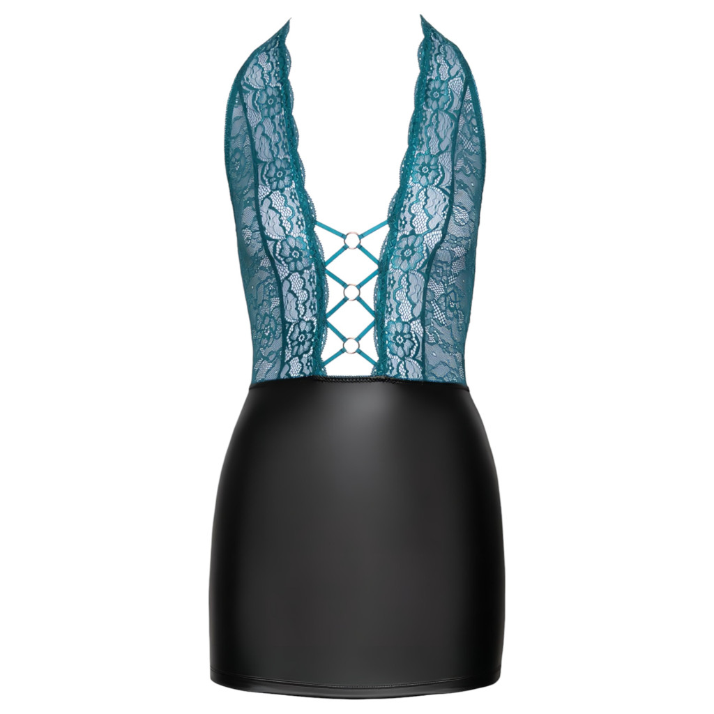 Cottelli - fűzős csipkés, fényes ruha (fekete-zöld)