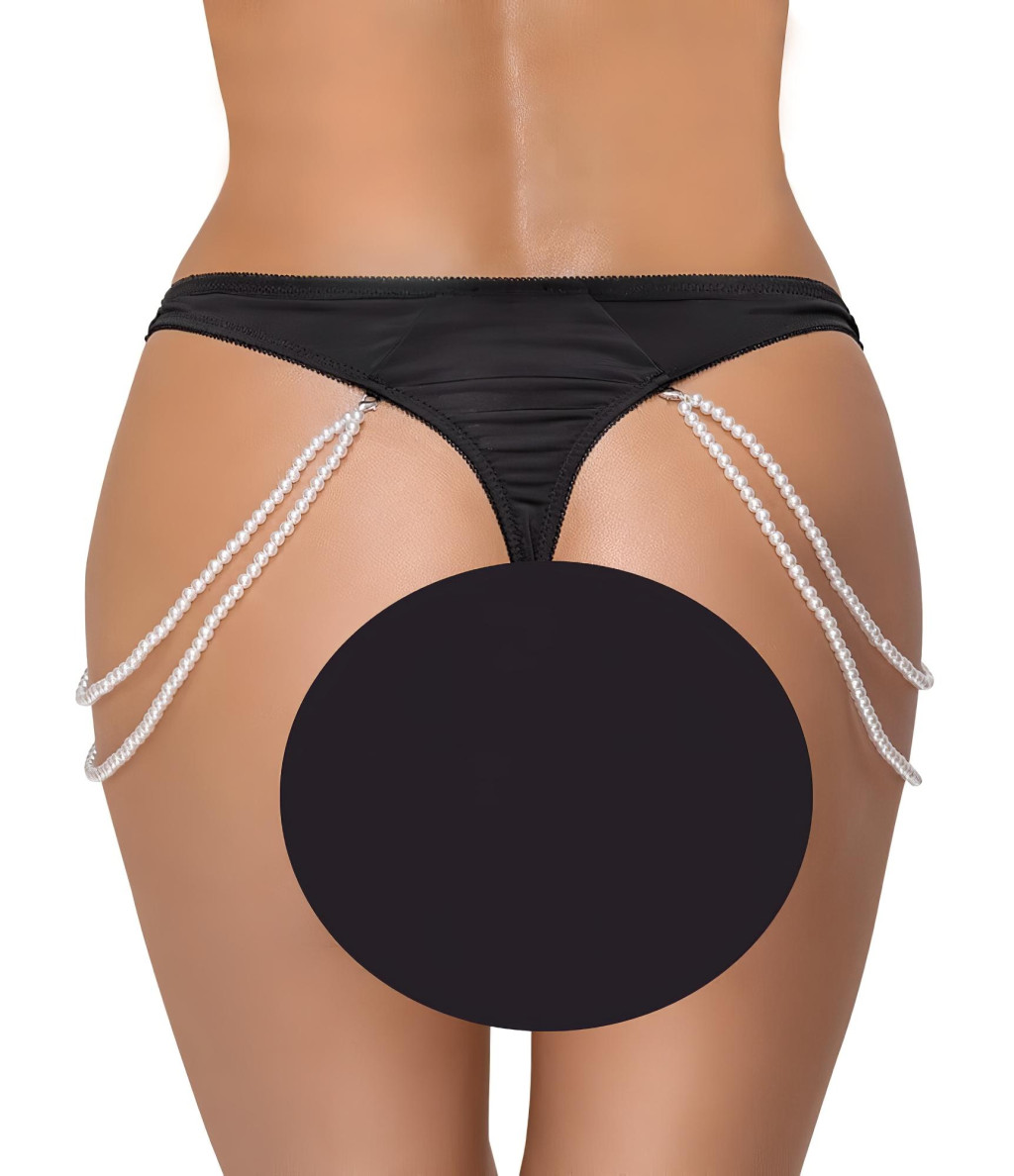 Cottelli - luxus, hímzett gyöngyös tanga (fekete)