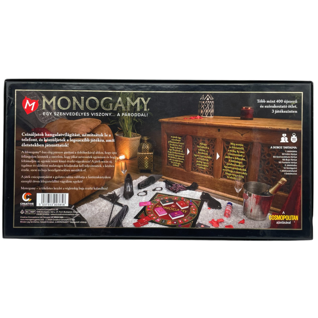 Nincs más feladatotok, mint megteremteni a megfelelő hangulatot a környezetetekben, lágy zenével, gyertyafénnyel, majd mindezek után néhány dobás a dobókockákkal és elmerülhettek a Monogamy-ban, mely a szerelem, a szenvedély és a bujaság társasjátéka.
