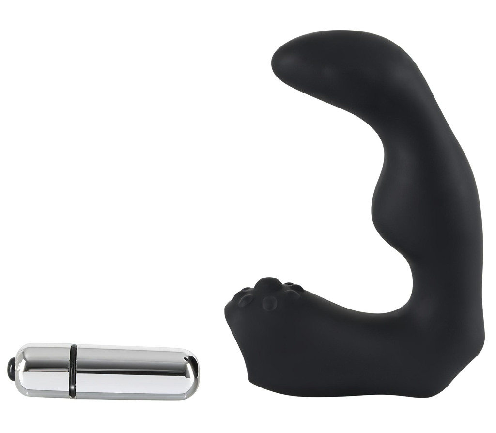 Tulajdonságok:-bőrbarát, ruganyos anyag-anatómiai, hajlított L-forma-bársonyos bevonat-hullámos felszín-keskeny spicc-kivehető minivibrátor-1 fokozatú rezgés-rücskös tő-prosztata és gát stimulálás-L-alak külső ívének teljes mérete: 25cm-behelyezhető hossz: kb. 9cm-átmérő: 2-3,3cm-fekete szín, ezüst színű vibrátorAnyaga: 100% Szilikon, PU-bevonattal (EU-rendeletnek megfelelő, phthalát-mentes).A termék 3db gombelemmel (3 x LR44) működik, amit a csomag tartalmaz.Használati útmutató letöltése (PDF)