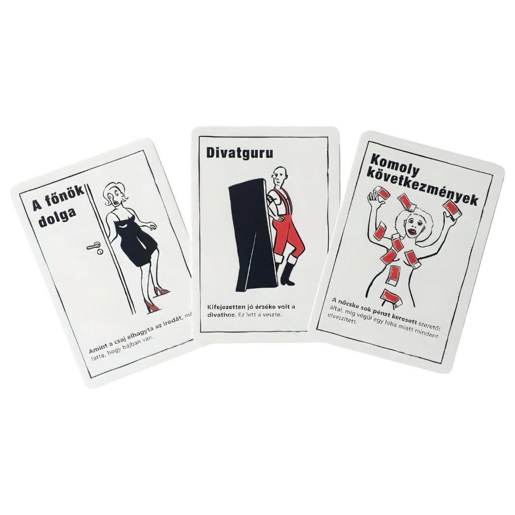 A játékról:Az egyik játékos lesz a mesélő, aki felolvassa a többieknek a kártya elején látható talányos mondatot, a többiek pedig megpróbálják kitalálni, hogy mi is történhetett. A mesélő a kártya másik oldalán látja a teljes sztorit, és a többiek eldöntendő kérdéseire válaszolva próbálja őket elvezetni a véres igazsághoz. Csak a mesélő olvashatja el a teljes történetet. A többi játékos csak egyetlen, a mesélő által felolvasott, talányos mondatot tud, nekik ebből kiindulva kell, eldöntendő kérdések segítségével felgöngyölíteni az esetet.A Szex és Vér kiadás mindegyik történetét a vágy vezérelte, és a szereplők igencsak komolyan vették a "szerelemben és háborúban mindent szabad" mondást...Ha te is szereted az enyhe bűntudattal megspékelt szívből jövő kacajokat, akkor a fekete történetek tökéletes kiegészítője lesz baráti összejöveteleidnek!Termék specifikáció, tulajdonságok: