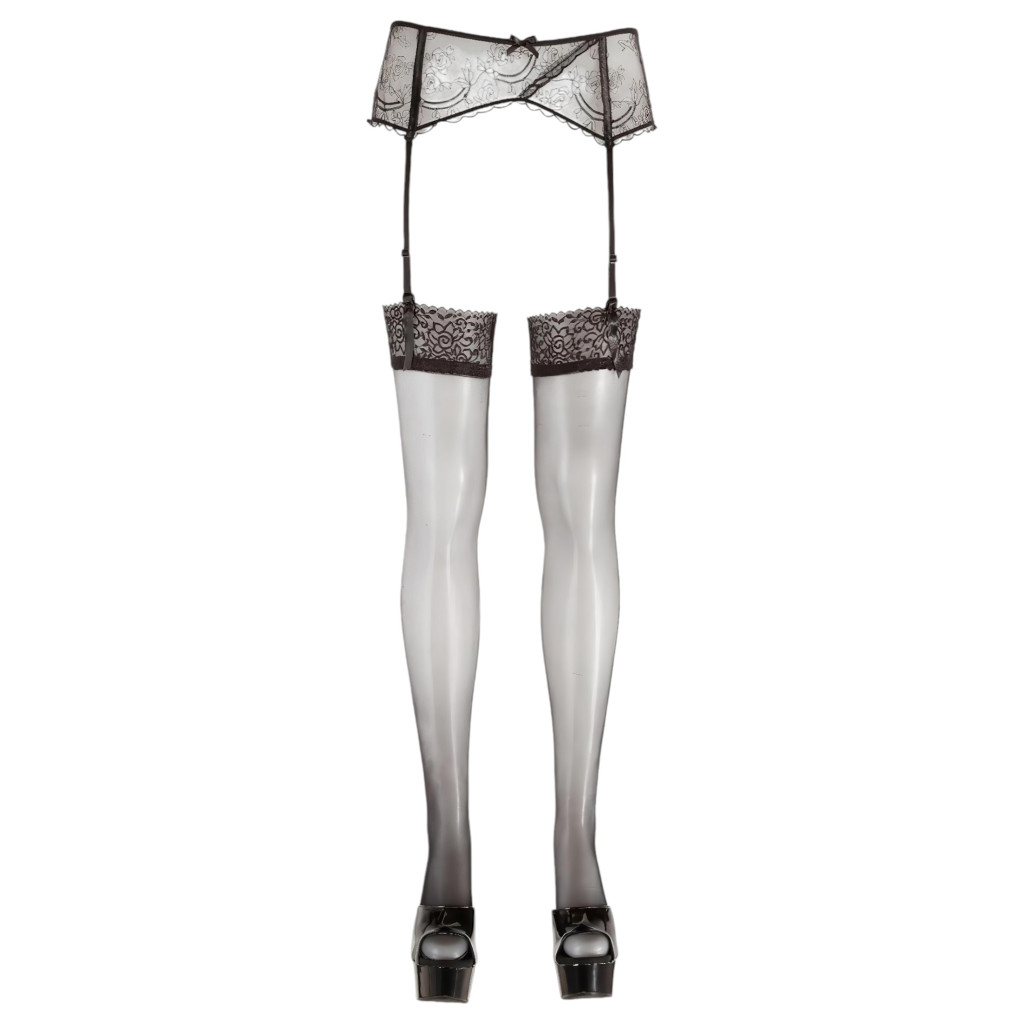 Lenyügöző hatású romantikus megjelenés. Hordja ezt a pánt nélküli harisnyát és élvezze a csodáló férfi pillantásokat... Ezzel a darabbal egy csodálatosan szép harisnyát birtokol, amely a fehérneműit különlegessé teszi. A széles csipkeszegély erotikusan vonzó. Színe: fekete. 95% poliamid, 5% elasztán.