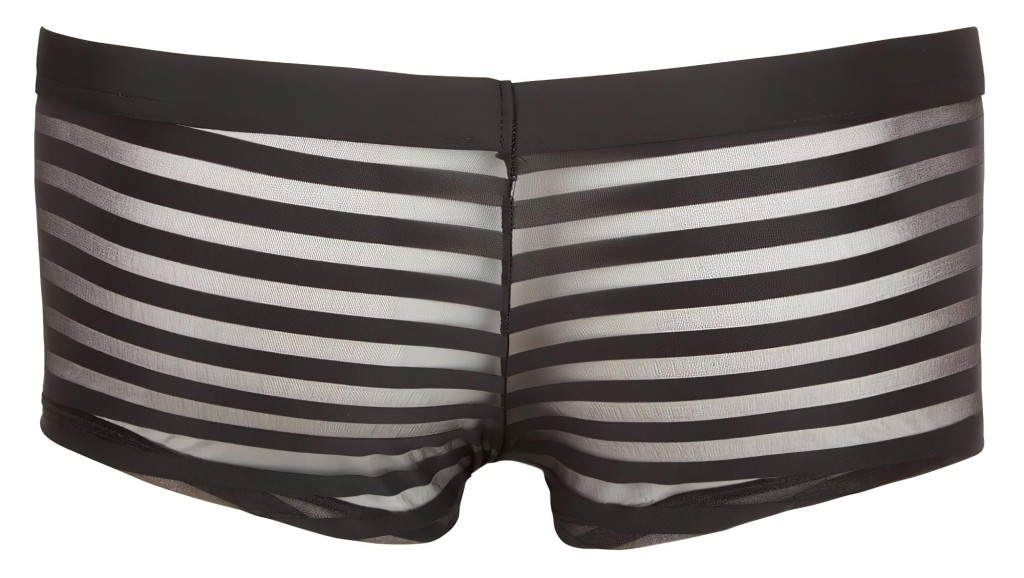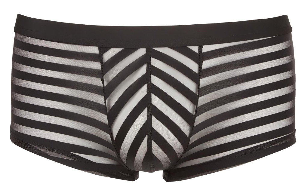 Rugalmas, kényelmes anyagból készült boxer, fényes, áttetsző csíkokkal, elöl péniszkiemelő szabással.