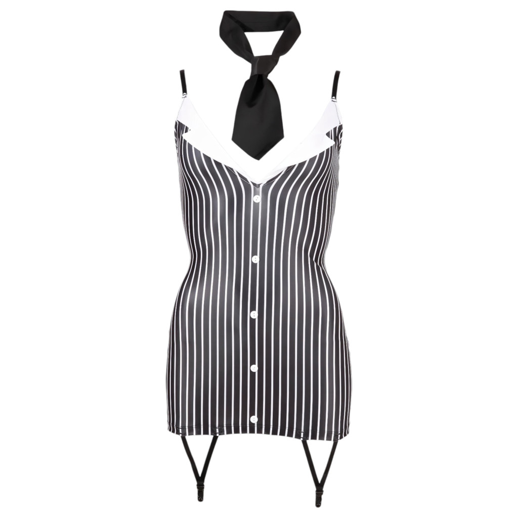 A csomag tartalma:1 darab szexi titkárnő ruha1 darab nyakkendőTerméktulajdonságok:Szín: FeketeAnyag: 92% Poliészter, 8% ElasztánÁllítható pántokDekoratív gombok és gallér a dekoltázs környékénKiegészítő nyakkendővelElegáns és szexi megjelenés