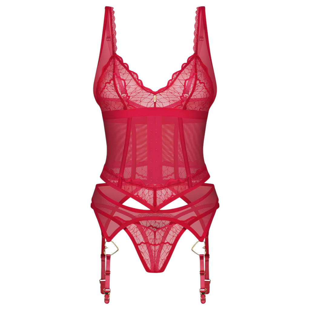 Obsessive Cupide Desir - átlátszó csipkés felső szett (piros)