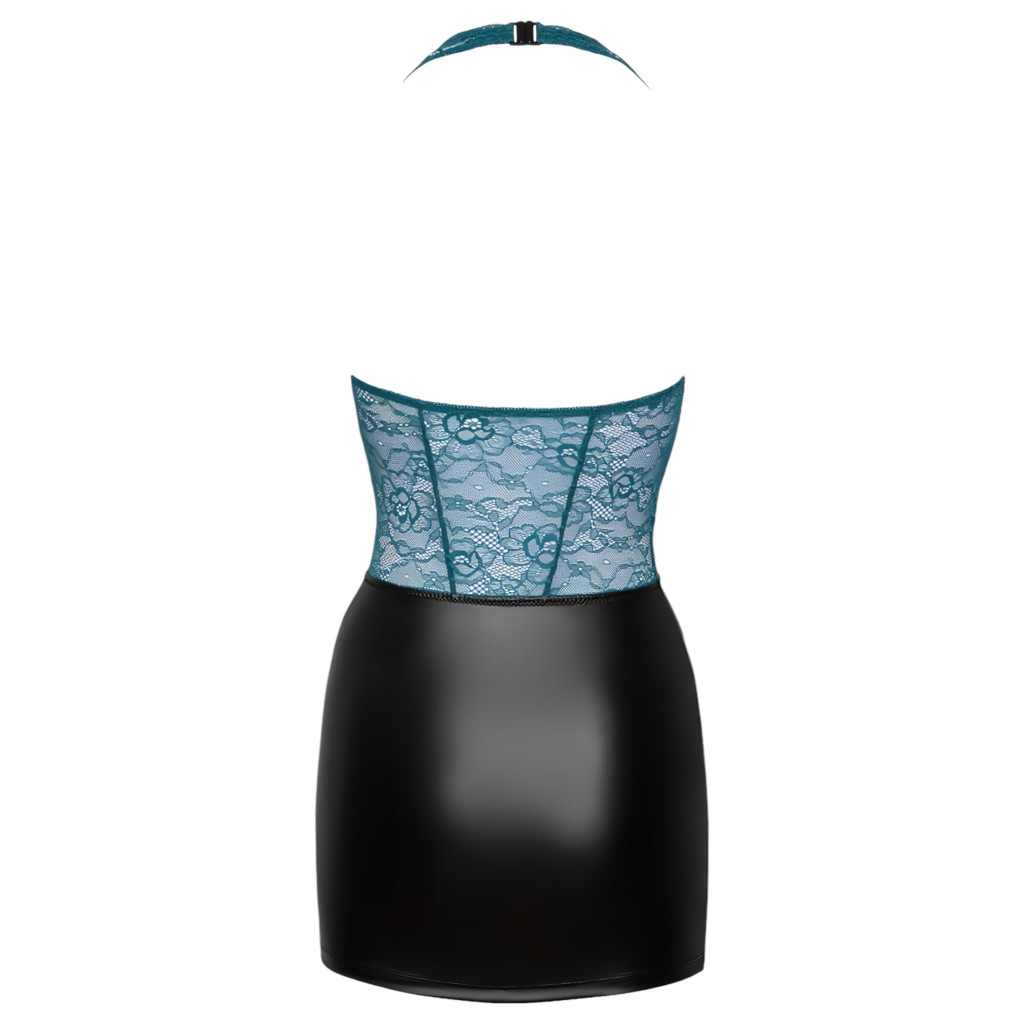 Cottelli - fűzős csipkés, fényes ruha (fekete-zöld)