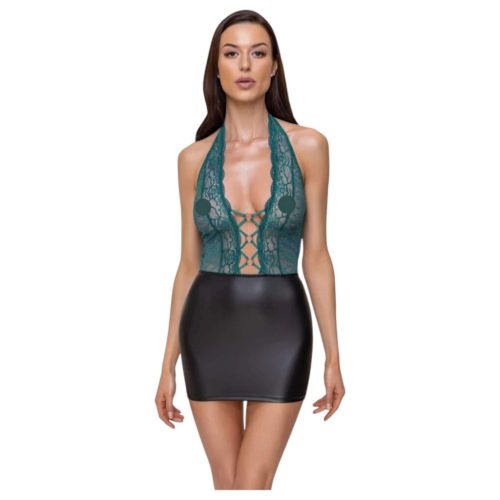 Cottelli - fűzős csipkés, fényes ruha (fekete-zöld)