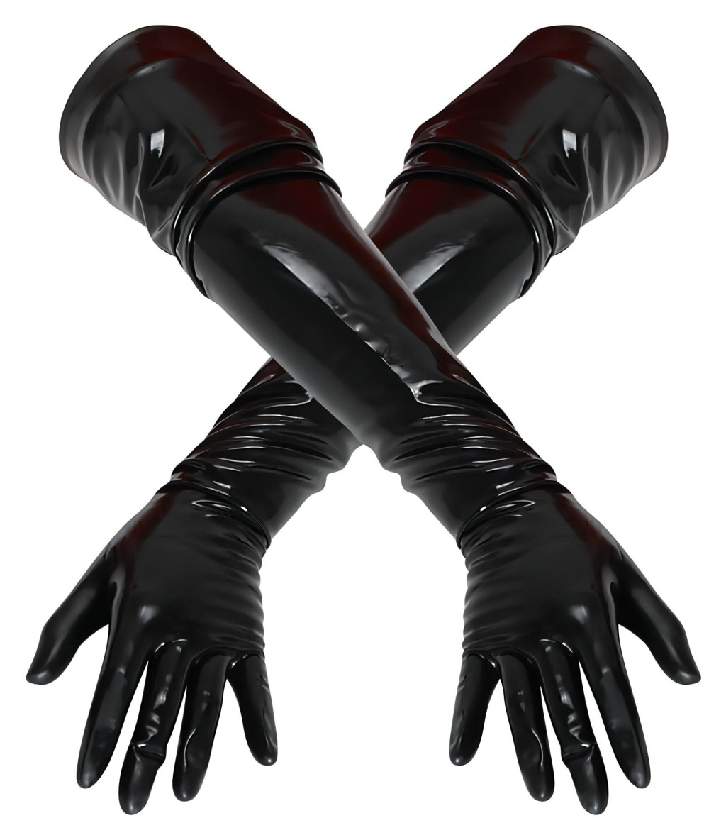 Ruganyos latexből készülő, 5 ujjas, hosszú kesztyű, egyenes szabásvonallal.Anyaga: 100% latex (gumi), ami gyárilag védőpúderrel van kezelve (matt). Felpolírozásához latex fényspray szükséges.Fekete színben.FIGYELEM: A latex ruhákat kizárólag latex ruhákhoz speciálisan kifejlesztett púderrel vagy síkosítóval ajánlott felvenni, mert egyéb esetben az anyag a bőrhöz tapad és könnyen elszakadhat.A latex anyagra érzékenyeknél allergiát válthat ki.